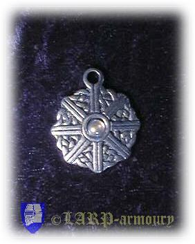 Der einstige Zukunftskönig der Kelten war Arthur. Der Schild stellt den runden Tisch dar. Die Mitte symbolisiert seine Loyalität und die acht Arme repräsentieren die acht jahreszeitabhängigen Feste der Kelten.